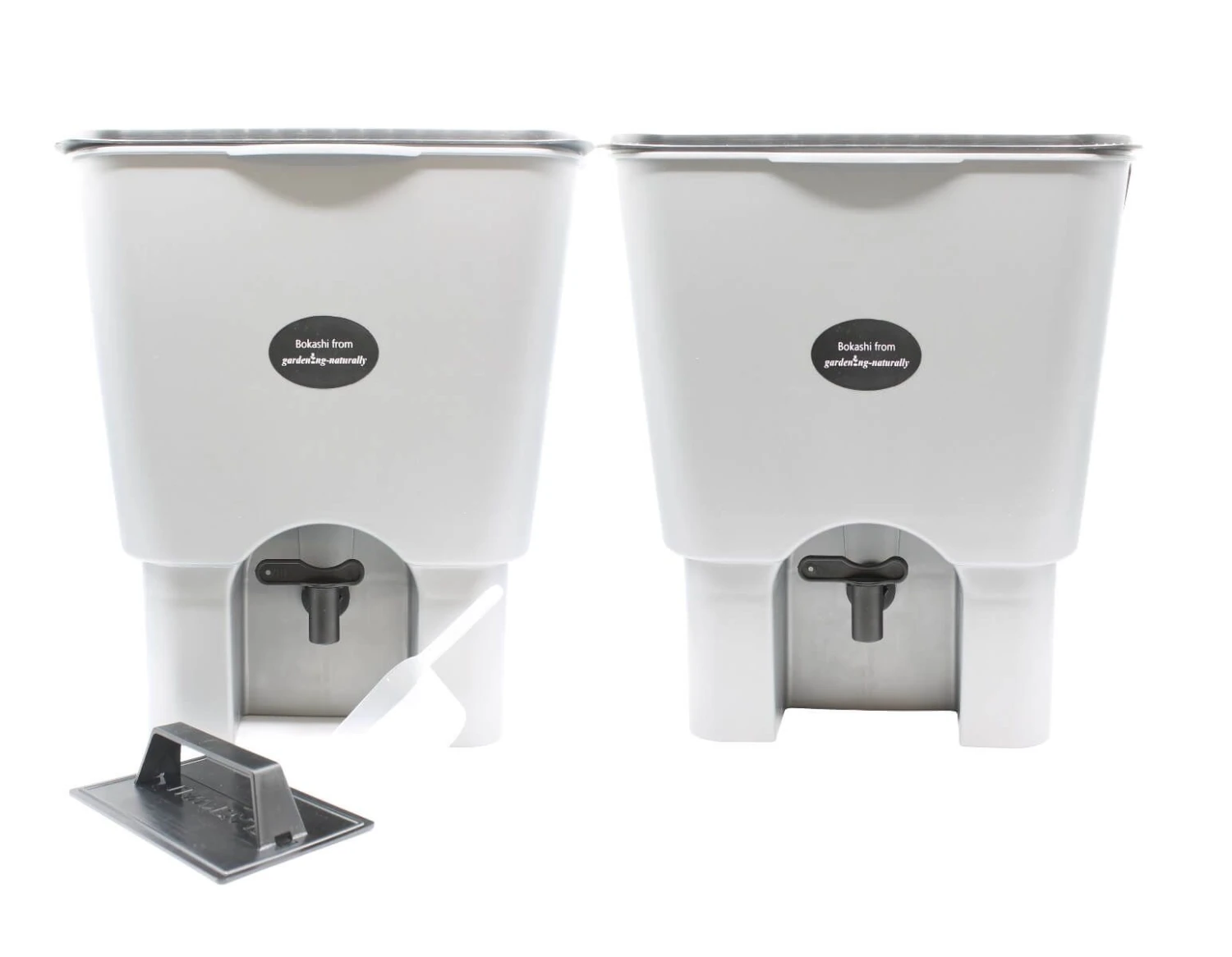 The pair of Bokashi Bins are an excellent way of converting your kitchen waste into nutrient rich soil conditioner for your garden.