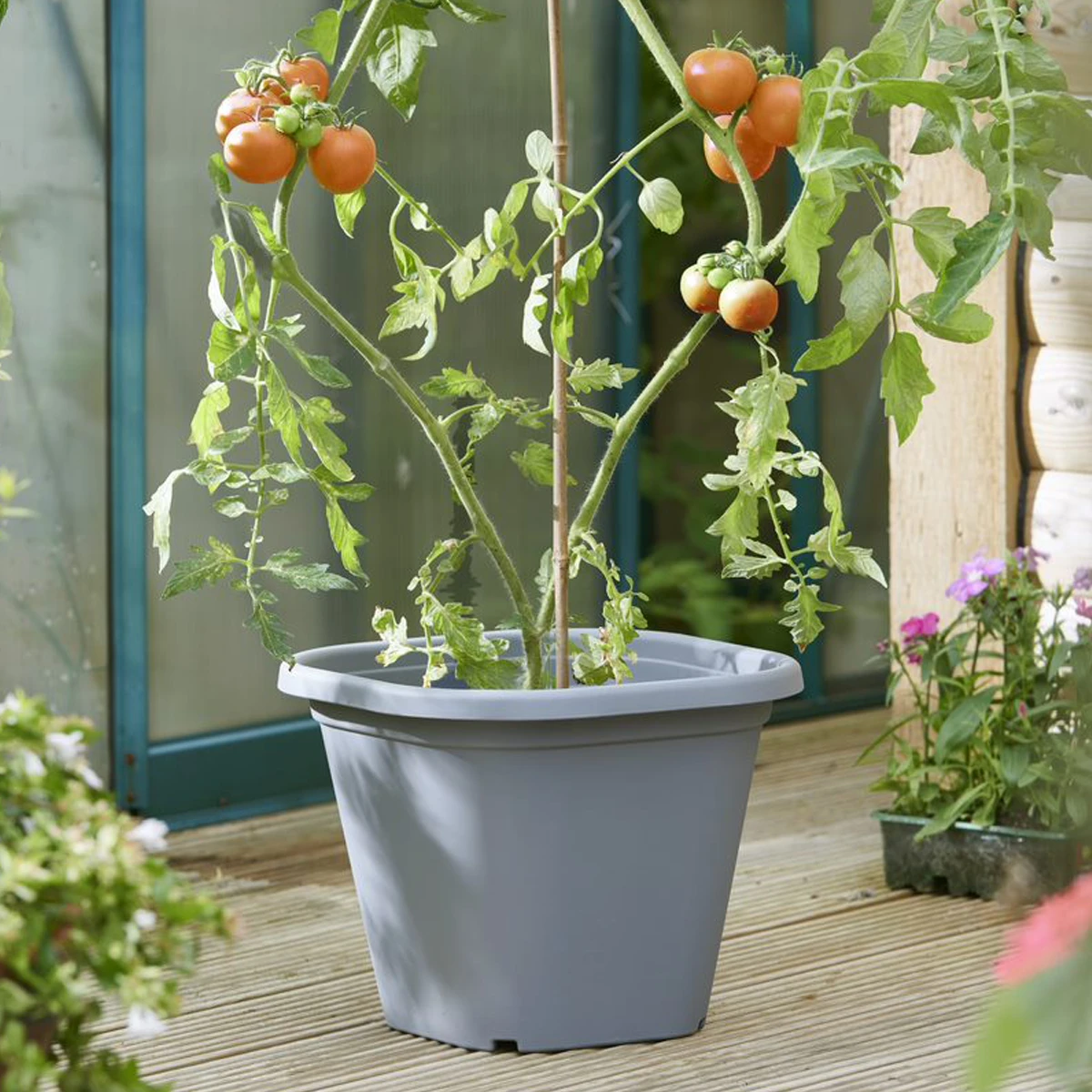 This very clever pot will help you grow beautiful tomatoes very easily. It has a built in water reservoir which reduces the amount of watering and also stops the over watering. The pot is charcoal in colour and will look beautiful in any garden.