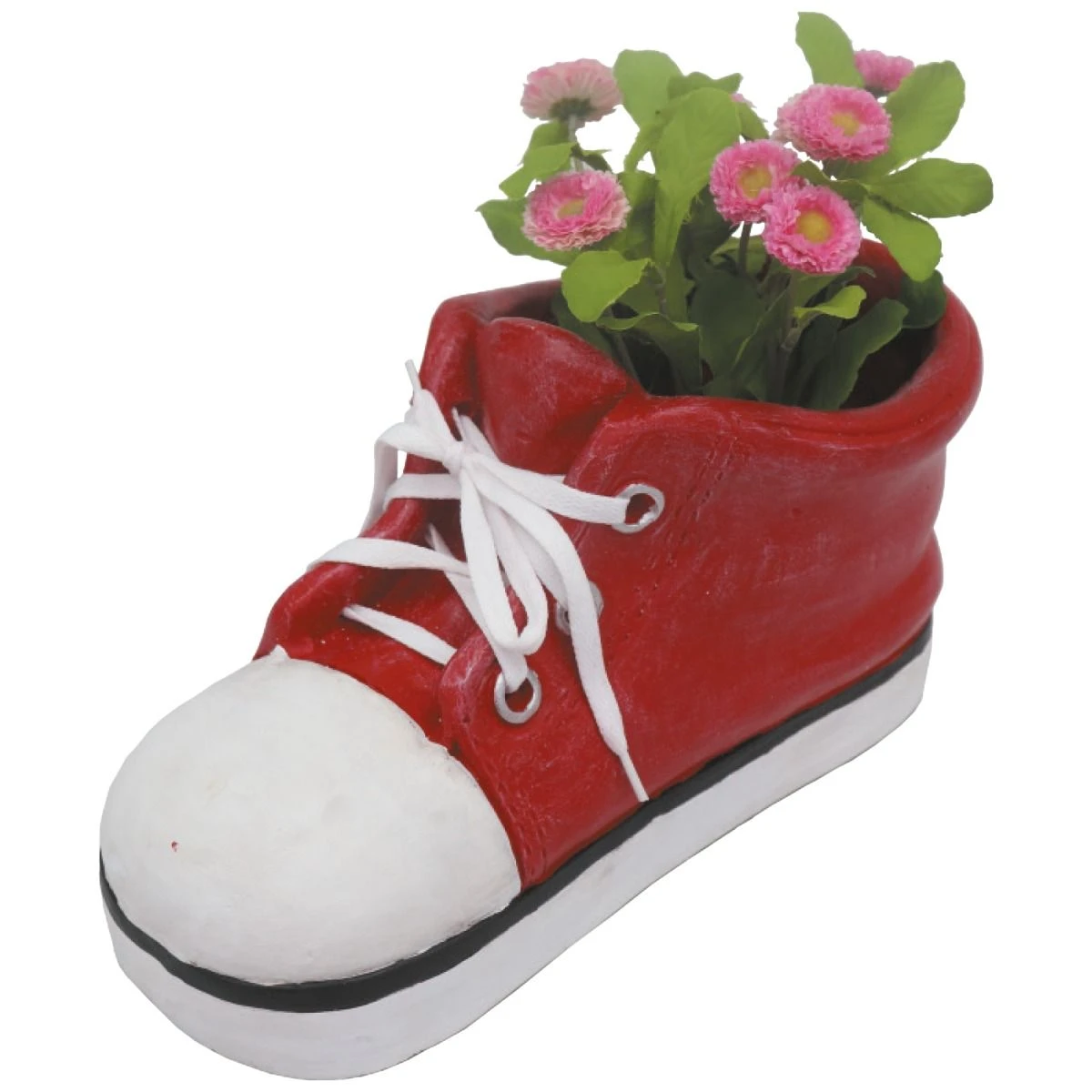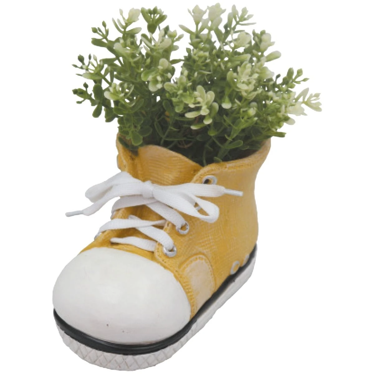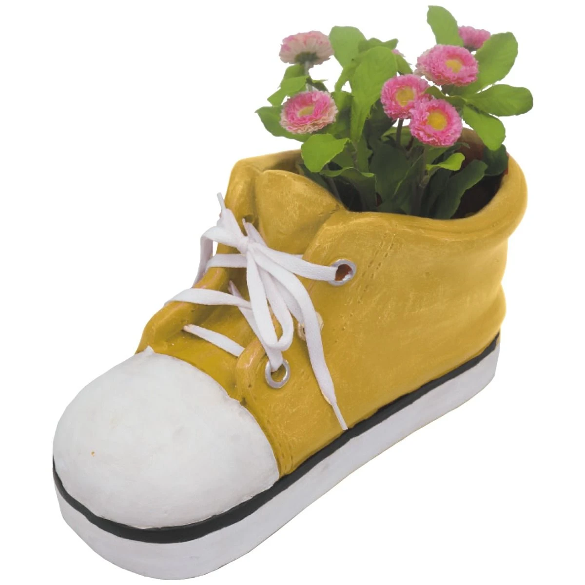 These cute shoe planters are ideal for both indoor and outdoor growing. Made from a frost proof polyresin they are novel and a little different to the usual planters. The planters come with a drainage hole at the bottom and complete with real laces. Available in small or large sizes and a choice of 4 colours – yellow, blue, red and pink.