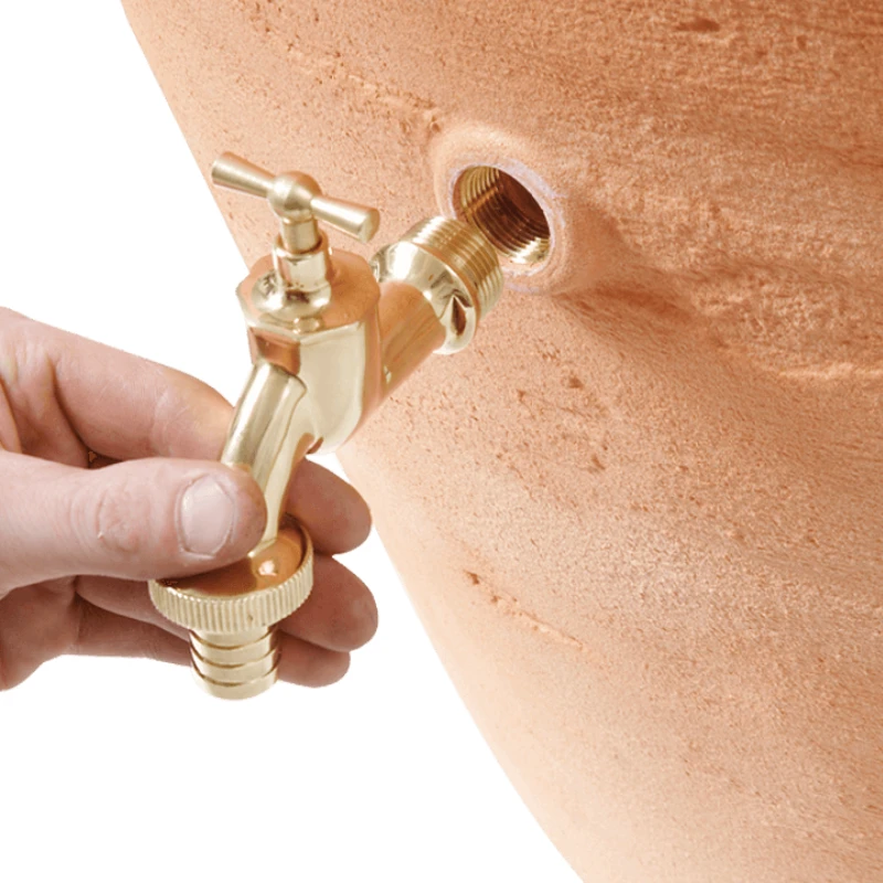 The high-quality threaded tap hole makes water butt tap installation easy, with the water below the tap level serving as a stable base. The antique amphora water butt is also easily installed to any downpipe.