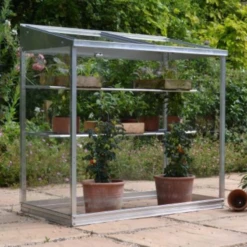 It features a high density reinforced PE cover, 2 openable zipped side panels, a powder coated steel frame all with enough space for 2 standard sized grow bags and trays.