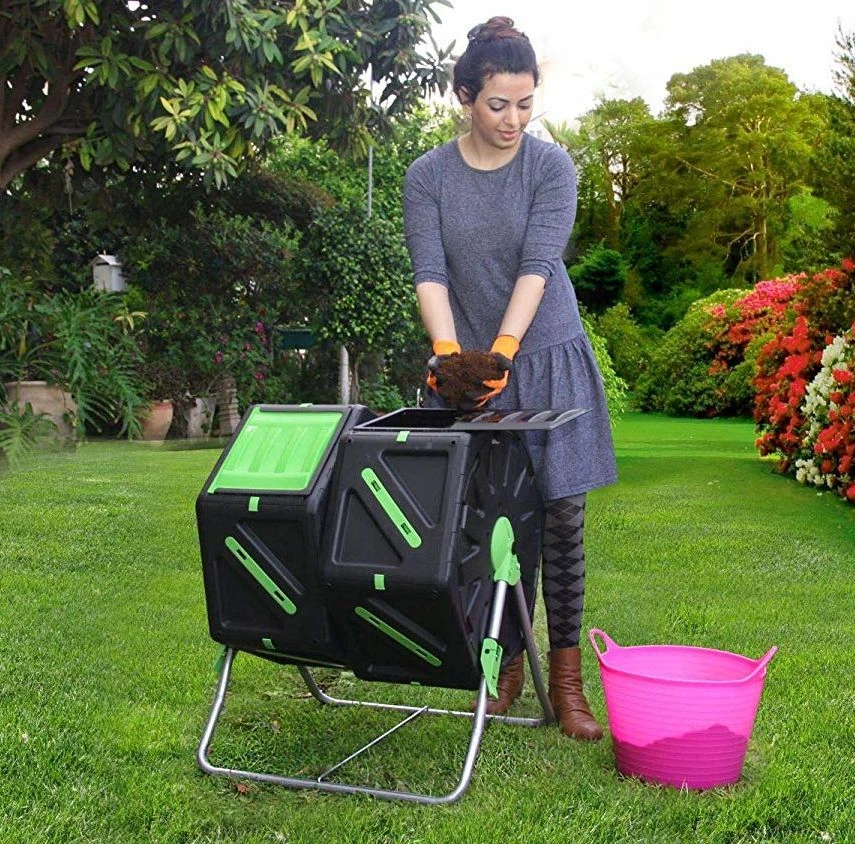 Our dual chamber tumbling composter is a great way to speed up the composting process. The dual chamber design allows you to easily fill one chamber and leave it to mature while adding new materials to the other side.