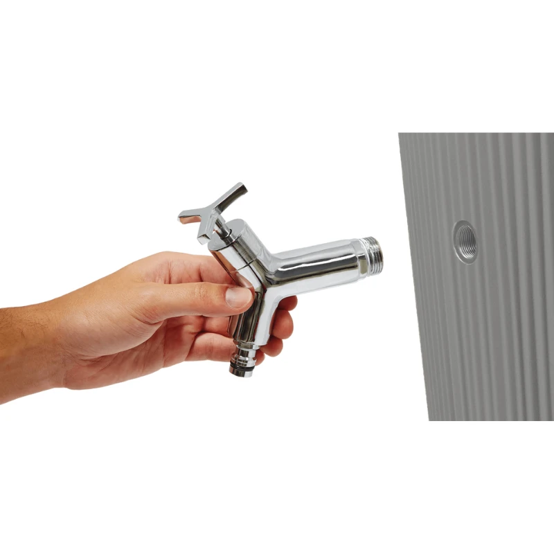 The Linus water butt comes with two integrated threads on the inside of the water butt, allowing you to easily connect taps to it. The planter cup on the top of the water butt is removable, making planting easy and allowing you to customize your water butt. Additionally, the removable feature also allows easy access for cleaning the inside of the water butt. The water butt is equipped with a outlet tap for dispensing water and a connection for the downpipe.