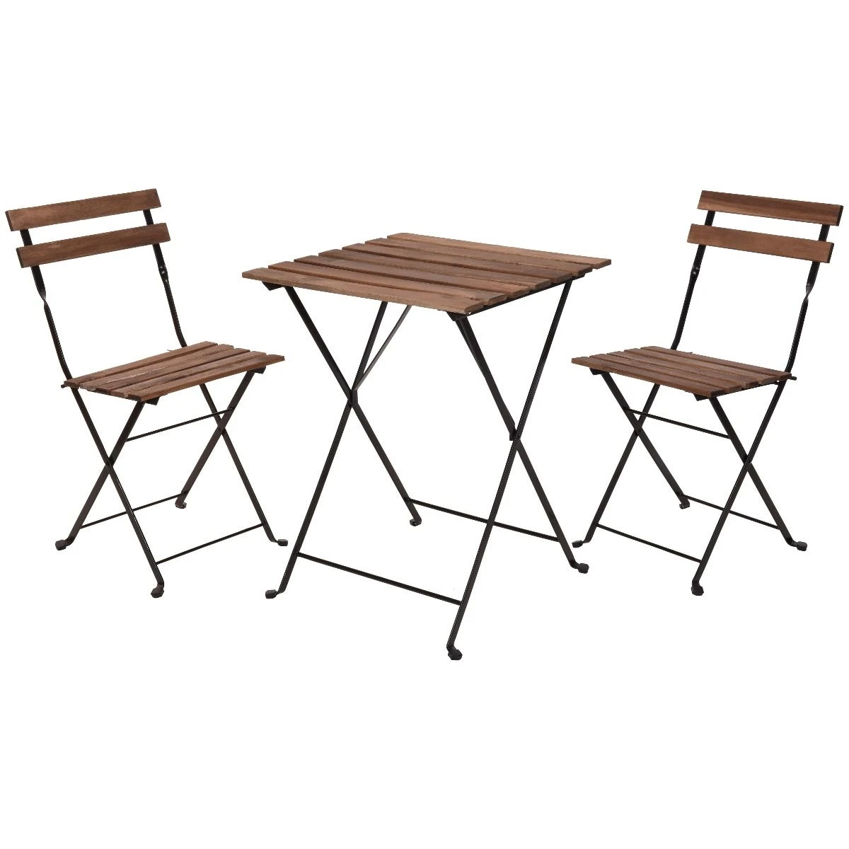 These wooden top bistro sets are ideal for any garden space, the can also be used indoors. Bringing a touch or Parisian magic they are ideal for patios, balconies and decking. This bistros set comprises of 2 wooden top chairs and a wooden top table. The frames are made from powder coated metal making them sturdy and long lasting.